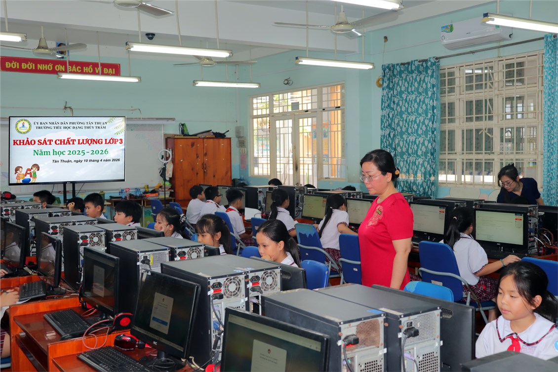 Sáng ngày thứ Sáu, 10/04/2026, tại phòng Tin học ở 2 cơ sở các em học sinh lớp 3 Trường Tiểu học Đặng Thùy Trâm đã tham gia làm bài khảo sát 2 môn Toán và Tiếng Việt.