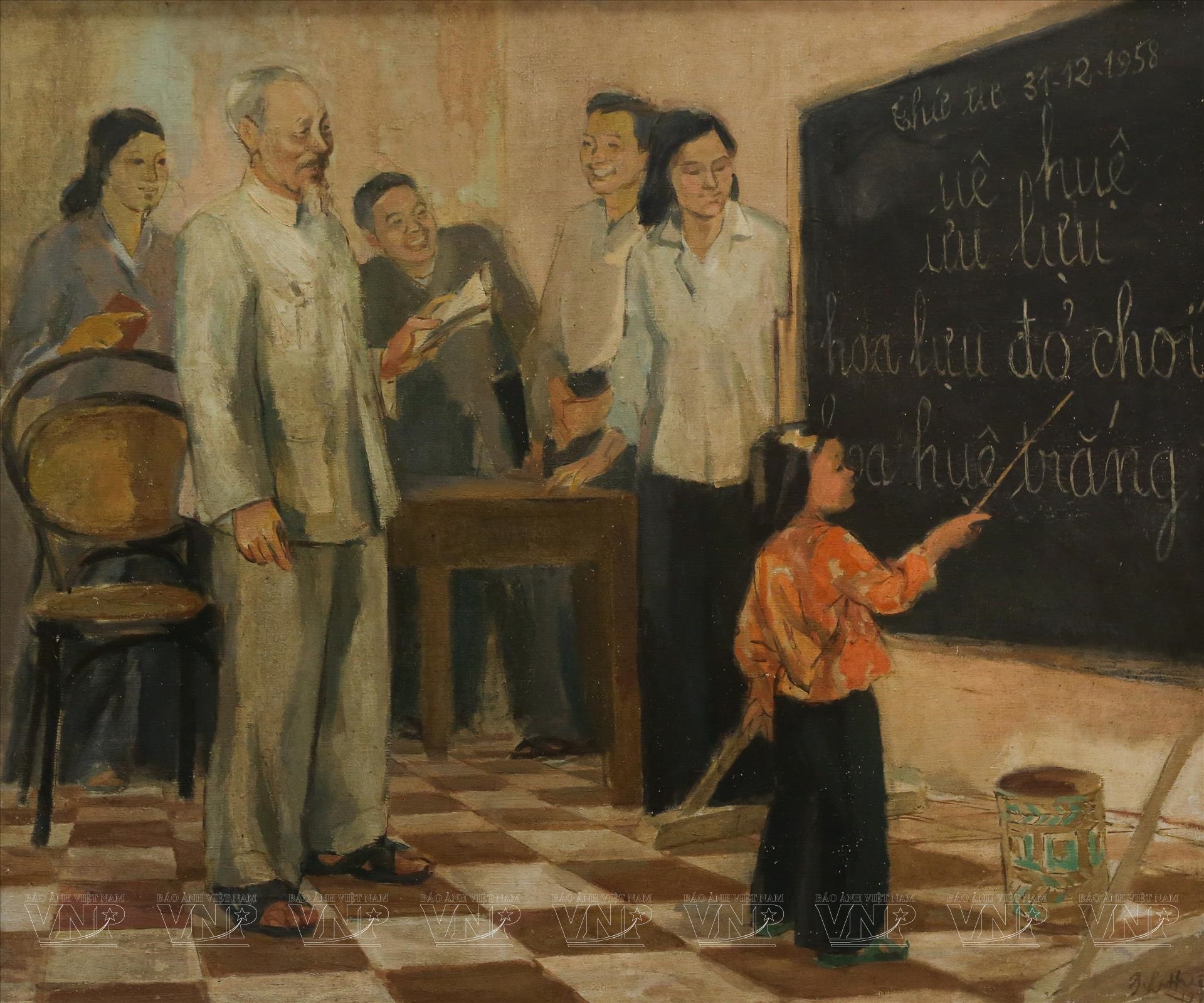 Tác phẩm Bác Hồ thăm lớp vỡ long của tác giả Đỗ Hữu Huề.